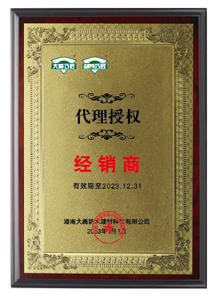 為了助力銷售渠道正規(guī)化,同時進(jìn)一步協(xié)助經(jīng)銷商門店進(jìn)行推廣,打造線下門店在消費者心中專業(yè)、值得信賴的形象。大禹巧匠防水在正規(guī)的銷售渠道頒發(fā)了代理授權(quán)牌。
