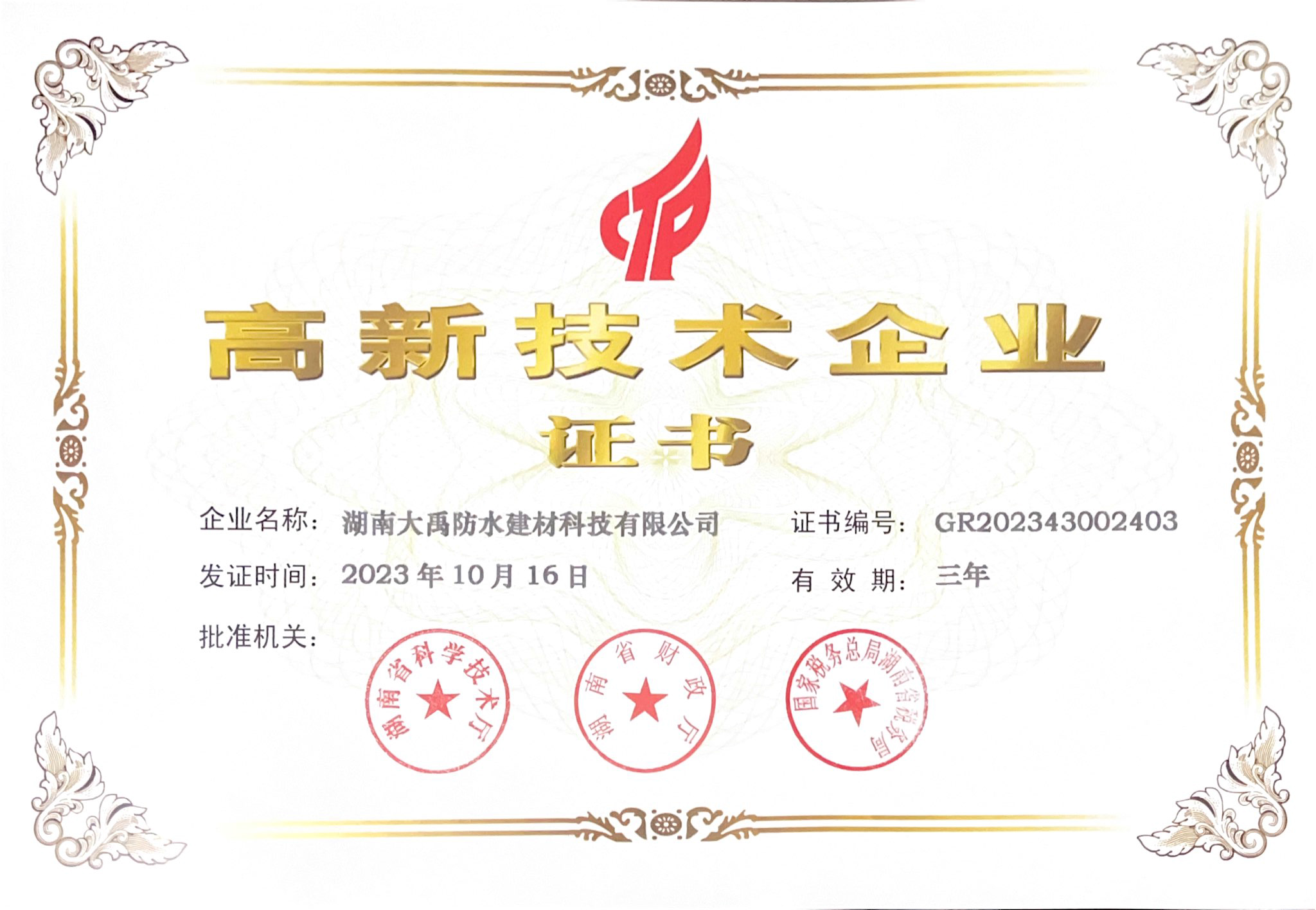 高新技術企業(yè)證書